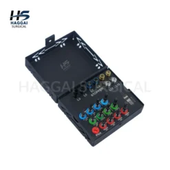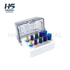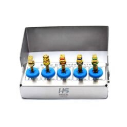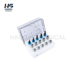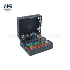 The Dental Implant Drill Guide & Positioning Kit is designed to help clinicians accurately determine implant placement and spacing during implant procedures. The kit includes multiple drill guides, positioning pins, and pilot drills organized in a compact sterilizable storage box for easy handling and safe instrument management.