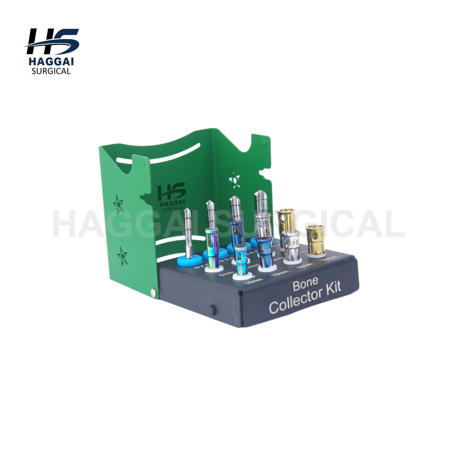 The Haggai Dental Trephine Bur Drill Kit (8PCS) is designed for precise bone cutting and bone core retrieval during dental implant procedures. The kit includes multiple trephine drills in different sizes, providing accurate osteotomy preparation and implant site management. Supplied with a sterilization holder for safe storage and organization.